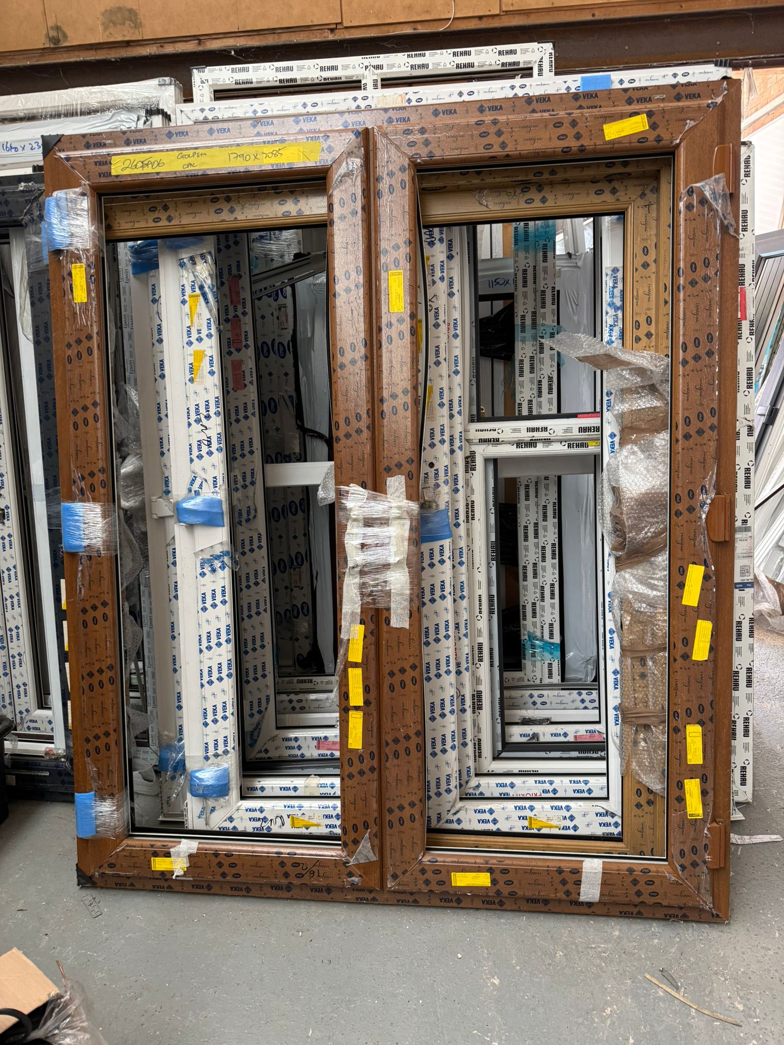 • Pre-fitted in a golden oak UPVC frame